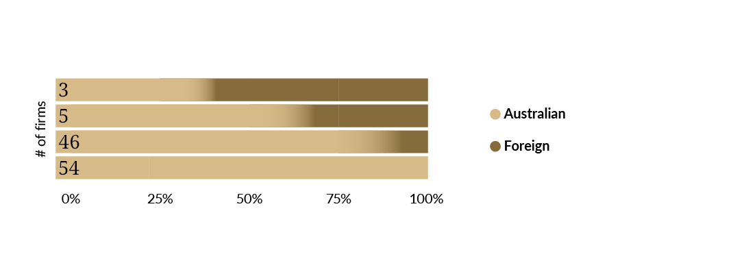 These findings suggest that while the Australian legal market is primarily domestically oriented, a subset of firms actively engage in cross-border work, catering to the needs of international clients and businesses.